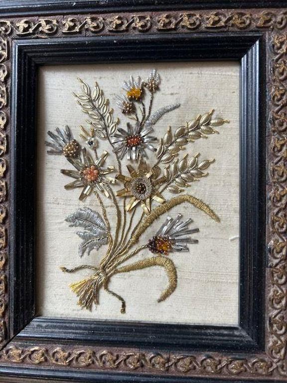 Die Goldstickerei ist die kostbarste Stickform, aber auch die schönste. Wir sticken mit Metallfäden aus Gold und Silber ein Blumenbild. Dazu verwenden wir zusätzlich Pailletten, Perlen, Glasperlen...