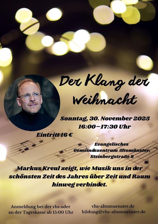 Weihnachtszeit ohne Musik – unvorstellbar! Ob traditionell, gefühlvoll oder poppig – wir lieben Weihnachtsmusik in all ihren Facetten. Auch klassische Komponist:innen haben sich von der Weihnachtszeit inspirieren lassen. Markus Kreul hat besondere musikalische Entdeckungen zusammengestellt und zeigt, wie Musik uns in der schönsten Zeit des Jahres über Zeit und Raum hinweg verbindet. Werke von Mozart, Gade, Schumann u. a. gespielt und moderiert von Markus Kreul (Klavier).